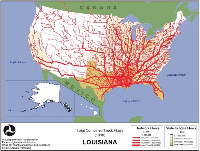 The following provides just a few examples of major inland ports that connect with coastal U.S. ports.